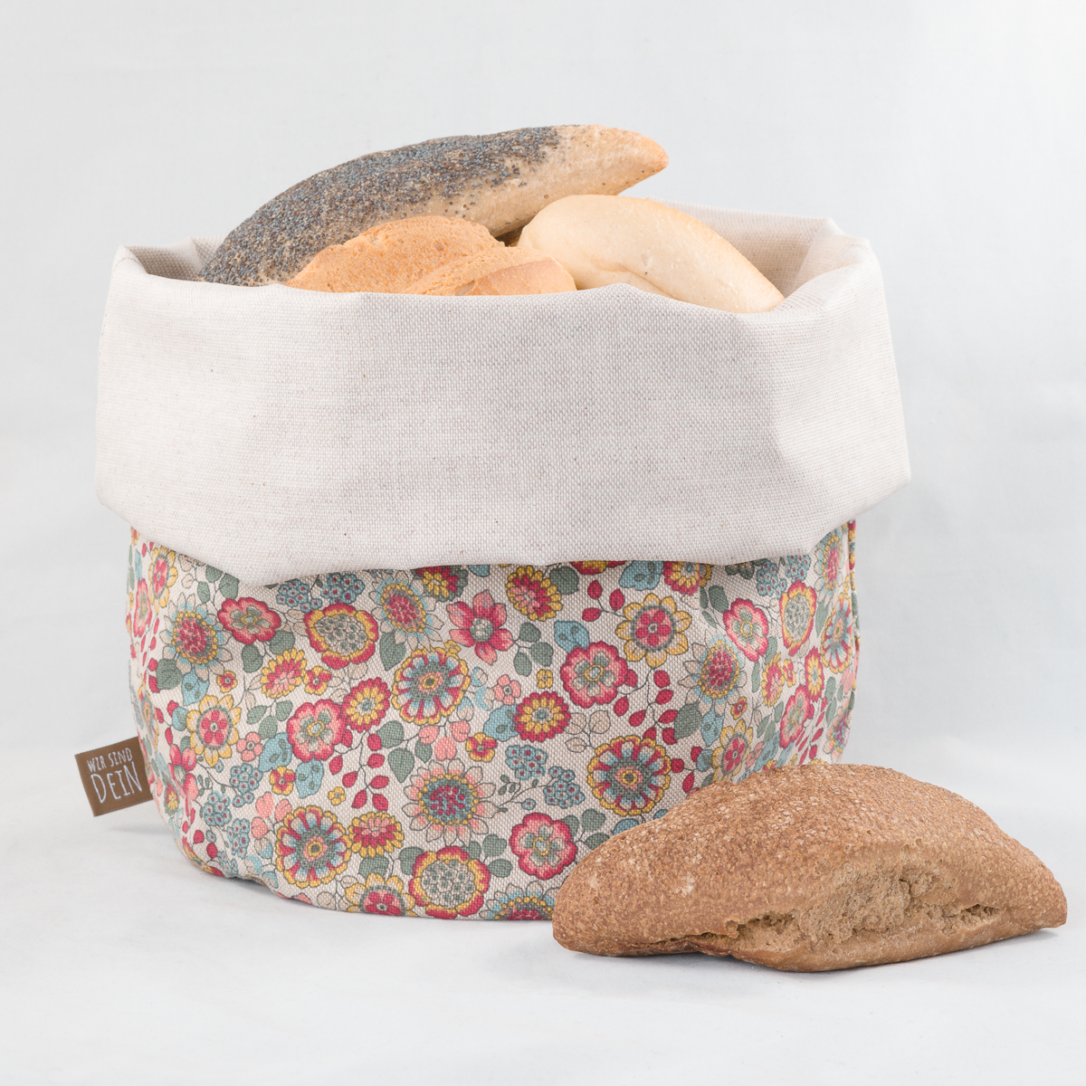 Er ersetzt Einwegverpackungen, hält Brot und Brötchen dank atmungsaktivem Innenstoff länger frisch und dient gleichzeitig als stilvoller Brotkorb.