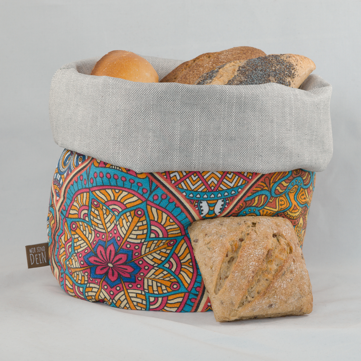 Er ersetzt Einwegverpackungen, hält Brot und Brötchen dank atmungsaktivem Innenstoff länger frisch und dient gleichzeitig als stilvoller Brotkorb.