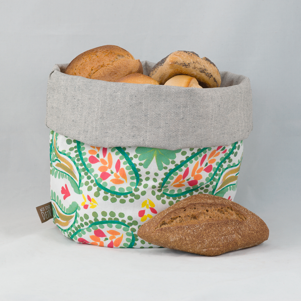 Er ersetzt Einwegverpackungen, hält Brot und Brötchen dank atmungsaktivem Innenstoff länger frisch und dient gleichzeitig als stilvoller Brotkorb.